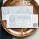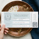 Bjud in dina gäster ombord med stil med vår bröllopsinbjudan i form av en embarkeringssedel för kryssningsfartyg. Denna unika design har vår handritade Amour Seas-logotyp, komplett med ett charmerande hjärtformat fartygsankare. Era bröllopsdetaljer visas elegant i en autentisk embarkeringssedelsformat, medan en skannbar QR-kod gör det enkelt och snabbt att svara. Baksidan fortsätter den sofistikerade designen med en elegant vapensköld, hjärtformat ankare och en skissliknande kryssningsfartyg med hjärtformade fönster – vilket skapar en minnesvärd souvenir som era gäster kommer att värna om. Perfekt för par som planerar ett resetemat, destination- eller kryssningsbröllop, denna inbjudan kombinerar elegans
