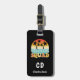 En svart bakgrund. Skorterad med en reflexbild tittar med en solnedgång, handflatan träd och texten: Kryssruta. Anpassa och lägg till ditt monogram initialer och fullt namn på framsidan. Tillbaka: lägg till kontaktinformation.