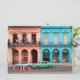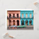 Kuba är en fantastisk med intressant arkitektur och gamla, återskapade bilar i berömden. Den här gatuscenen kommer från Havanna.Den visas på ett platt kort med kuvert.