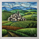 En högkvalitativ grafik av ett kubiklandskap på en scen i land med fält, backe och ett lantbruk, som alla är indelade i geometriska former med en texturerad, målande kvalitet. Den här designen är perfekt för ett stort urval produkter för dem som uppskattar abstrakt konst och land scener.