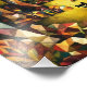Kubistisk höstskog med River and Meadow - Futuristiska Watercolor Art. Denna digitala högvattenfärgsmålning kombinerar cubism med panfuturism och beröring av hyperrealism för att beskriva en mesmeriserande höstskog. Riken , orangar och gulter fyller landskapet, där varje löv och objektmorfer fylls i geometriska former. En flod som är en serenskugga och en flod som skär genom den här kubistiska tolkningen av en fallskog och blandar ihop detaljer med futuristiskans abstraktion för en unik fängslande teckning.