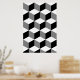 Optisk illusion av former som skapar mönster i kuber i svartvitt och grått.