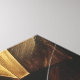 Utforska fusionen av konst och geometri med detta slående abstrakta porträtt. Träfragment och guld formar ett mystiskt ansikte, accentuerat av intensiva röda nyanser. Perfekt för modern inredning och konstkontor. Ett verk av djup och lyx.