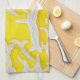 Ein gezacktes, gelb-graues Melonenmuter ist das Design dieses Küchentuchs.