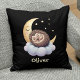 Denna bedårande personliga kudd har en söt liten igelkott hoprullad sovande på en mjuk moln under en halvmåne med lysande stjärnor.