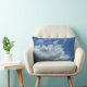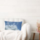 Moln 9. Fluffigt vitt moln på djupblå himmel på framsidan av kudden. Enfärgad himmelblå färg på baksidan. Med denna kudde kan du glida in i en vilsam sömn bland böljande moln.