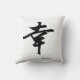 Den japanska calligraphyen för "lycka" på en dekorativ kudde, som kan vara någon färg, önskar du. Du kan också skräddarsy formatet och tyget. Precis perfekt för rum med den asiatiska dekoren.