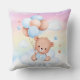 Kuddkudde med ballonger Regnbågs himmel - letar du efter något roligt och sött till ditt barns rum eller barnkammare? Kolla in denna söta kudde. Den har en super söt teddybjörn iförd blå med blå och roséguld ballonger. Teddybjörnen sitter på en moln med en mjuk pastell regnbåge himmel bakom honom.
