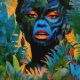 "Kuiráya" - Målad Löv - Kvinnor i Amazonas. Med en intensiv blick är hon lika slående och enigmatisk som ett löv som är märkt med naturens mönster, hennes surreala färglösa kroppsfärg som blandas med skogen, skapar henne en levande del av regnskogens ständigt föränderliga landskap.
