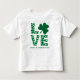 Dags att ha på sig det gröna i vår shamrockfyllda KÄRLEK t-shirt. Perfekt för St. Paddy's Day klädbyte på dagis eller för "vi är alla irländare för en dag"-festen som dina föräldrar anordnar för vänner och familj. Glad St. Patrick's Day!