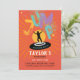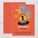 Unga äventyrare, gör er redo för en spännande dag med hopp! Våra livfulla inbjudningar har fet stil och en siluett av ett barn som hoppar på en studsmatta mot en slående orange-röd bakgrund. Anpassa din inbjudan med valfri text, tillgänglig i både tryckt och digital nedladdningsformat. Baksidan speglar samma iögonfallande orange-röda design. Följ med oss på en fantastisk födelsedagsfest fylld med kul och varaktiga minnen! Perfekt för barn eller tonåringar som älskar äventyr och spänning. Missa inte denna fantastiska fest - markera i era kalendrar och förbered er för en dag med högflygande kul!