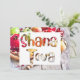Rolig Shana Tova på en akvarelldesign med granatäpplen, honung och äpplen. Allt du behöver för att fira Rosh Hashanah i år. Texten på baksidan lyder "Önskar dig ett sött, lyckligt och hälsosamt nytt år." som du kan byta ut, liksom familjenamnet. Klicka bara på Anpassa ovan för att göra ändringarna för dina judiska nyårsönskningar.