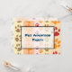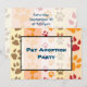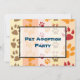 Inbjudan till husdjursadoptionsfest. En söt design med flera rader av djurens tassavtryck i naturliga färger som brun, gul, röd och orange på ett randigt mönster.