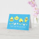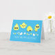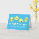 De säger, räkna inte dina kycklingar innan de kläckts. Men vad händer efter att de kläckts? Dessa gula babykycklingar är glada att träffa sin nya ankunge vän. Dessa söta illustrerade gula babykycklingar och ankunge står på toppen av illustrerade stjärnor och ägg, och ser fram emot att ha kul på gården, i ladugården eller runt dammen. Texten och den blå bakgrundsfärgen är anpassningsbar.