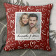 En kudde med ett foto av ett par som gör ett hjärta. Personifiera den med era namn, ert foto och ert datum. Designad för er av Blackberry Boulevard.