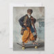 En äldre människa tar med sig modernt med flust och balanserar på en skateboard medan hon är klädd i ett dynamiskt, traditionellt indiskt tänkande. Hans kläder har en färgstark turban, skrapade sjalar och flytande orange dhoti byxor, som blandar arvet med contemporary inslag. Hans attityder och självsäkra uttryck bidrar till att förena gamla och nya, skapar ett djärvt påstående om stil och individualitet.