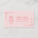 Befordra bageriet eller evenemangen med den här chicen, moderna affärskortet som ger en handritad bild av kakan i bröllop. Perfekt för konditorer, konfektionskonstruktörer, bröllopsfixararna och händelsetestistor, detta visuella estetiskt tillför en lekfull men professionell. De söta blommorna, bönorna och den dekorerade blomkakan gör detta till en söt och charmerande feminin stil. Ett snyggt som visar ditt varumärke och lämnar ett sött intryck på kunder som tittar efter elegant och evenemangsskapelser.