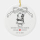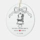 Fira din första jul som ett gift par med vår vackert utformade prydnad "Vår första julgift". Med en charmerande, handdragen ribbonbåge och en hjärtslitande kaka från bröllop är den här keepsakpresenten perfekt för att hedra minnet av er speciella dag. Håll ut träd för att hedra minnet av din kärlek-historia, eller ge den till nygifta som en tankfull påminnelse om deras resa tillsammans. Gör den här julhelgen oförglömlig med lite romantik och elegans.
