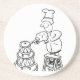 Cake Maker Decorerar en giant-kummel medan man sätter upp en stepladder. Kakan skapar.