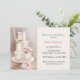 Ett söt inbjudningskort för möhippan med tre vågiga kakor av bröllop med rosor, rosett band, pärlor och kakor av vit svan. Bakgrunden till textområdet är en mjuk, gräddaktig på gräddpunktstaven mönster.
