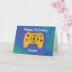 Skicka den här roligten till en pojkkusin när han snart fyller åtta år. Försättsbladet visar en videospelsstyrenhet för gult och insidan delar ett roligt-födelsemeddelande för honom. Lägg roligten på hans speciella dag med det här kortet.