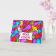 Kära Cousin, Glad påsk, pappert hälsningskort med färg-utformning av färgade Påskägg, en kniv och en chick. Ljusstark och färglös digital konsform med två Påsk-tecken som innehåller ett tecken med DEAR COUSIN skrivet på den. Anpassa det invändiga meddelandet, oavsett hur du vill före köpet. Art, bild och versell copyright © Shoaff Ballanger Studios, 2024.