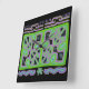 Kuna Indian Music Box Wall Clock - Kuna Indian, wall klocka, molavur, Panama mola, San Blas Island klocka, grönt violett svart