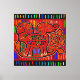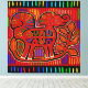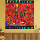 indie-konst, boho-inredning, tribal folkkonst, Kuna-indiansk mola, San Blas-ön, Kuna-indianskt inspirerad, tribalritual, Kuna-folkkonst, röd svart gul, blå grön rosa, Virginia Vivier, Vagabond Folk Art. Elefantbaby.