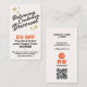 Kupong med rabatt för lojala kunder i öga - på baksidan finns qr-kod, medianätsikoner i social och logotyp-placering