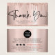 Tack för ditt kundrabattkort med ro guld och droppning glitter. Anpassa hela texten och medieikonerna i social för ditt varumärke. Tack kunder och kunder för att de har handlat med dig genom att ta med det här med paket och produkter för att säga tack och ge till dem en kupongkod för ett framtida köp för att uppmuntra till upprepad affärsverksamhet.