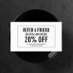 Ett helt enkelt designat kundrekord i svartvitt. Uppdatera befordringstexten för det erbjudande du vill erbjuda. Skapa mer försäljning och besök genom att uppmuntra dina kunder att vända sig till sina vänner för en rabatterad tjänst eller kostnadsfri produkt. Underbar för hårsalonger, nagelartister, detaljhandlare, kosmetologer och annat. © 1201AM-KREATIV