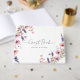 Personligt Bröllops Gästbok med vacker blommig design, rosa & lila, kan anpassas med era namn & datum.
