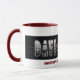 Vitkaffemugg med det röda handtaget och kanten. Dave Evans logotyp och KUNG ALLRA BADASSES i röda brev.