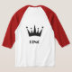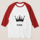 Kung Text eller Namn eller Ord med Black Färg Krona Image och Stil är Basic 3/4 Sleeve Raglan T-Shirt. Färg-typen är vit/röd.