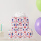 Red White och Blue themed Ogee Mönster för Coronation of Kung Charles III - CIIIR - i maj 2023. med Krona och Rampant Lejon i Ogee Mönster. Patriotisk förpackning papper för inslagning av gåvor och souvenirer i år för firandet av Kung Charles III och drottning Camilla den 6 maj 2023.