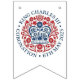 Kung Charles III Coronation logotyp på vit bakgrund. Logotypen representerar de fyra nationerna i Förenade kungariket via de nationella blommorna i varje land - ro i England, Skottlands historia, daffodil of Wales och Nordirlands schamprock.