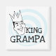 Kung Grampa T-tröjor, hoar, mugg, kort, knappar, magneter, nyckelkedjor, säckar och andra grampa-kläder och presentartiklar med en retrodesign med en grampa med kung krona och text som lyder Kung Grampa!