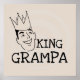 Kung Grampa T-tröjor, hoar, mugg, kort, knappar, magneter, nyckelkedjor, säckar och andra grampa-kläder och presentartiklar med en retrodesign med en grampa med kung krona och text som lyder Kung Grampa!