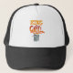 Finns det en kille i ditt liv som är besatt av barbecuing och matlagning på grillen? Han kanske är Kung i Grill. Berätta för honom hur mycket du uppskattar hans matlagningsförmåga med den här roligten basebollsockeln. Det här är perfekten för att hålla sol borta från ögon medan han arbetar hårt på grillen. Handskrivna spådomar ut budskapet KUNG AV GRILL med min illustration av ett galler som bär krona nedanför på framsidan av denna hatt.