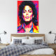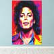 Öka ditt utrymme med den här vibranta popkonsten porträtt av Michael Jackson! Kung i Pop visar glatt hår, ikonisk jacka och glansigt halsband i rött, gult, blått och lila med abstrakt stänk fullt energi. Den här illustrationen fångar hans karisma, talang och scennärvaro, perfekt för popculture fläkt. Lägg till mod och inspiration till din dekoration med detta unika biet. Köp nu och fira innovatörens arv!