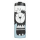 Modern baby/ungar har en nordisk stil-illustration som är söt lejon med krona på blå och vit färgblocksbakgrund.