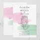 Den här designen har en svart elegant som illustrerar en kung-proteablomma. Rosa- och grönt-vattenfärgspenseldrag gör att svartvita bilder av blommigten blir levande. Rosa och grönt färglinjer skapar blommigtens färg-toner som kompletterar designen. Konstruktionen är centrerad och separerar den sofistikerade typografin. Elegant bröllop sparar datumkortsdesignen med modernt inslag. Det finns också möjlighet att matcha bröllopsinbjudningar och andra artiklar i kontorsartiklar.
