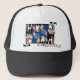 "Kungen av dumbommar" planlägger på en truckerkeps. Designen föreställer "en stupad styrka"; är den i ett förhållande eller ett kortspel.