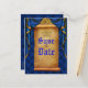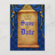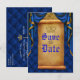 Kunglig blå guld draperi rullande bröllops spar da meddelande vykort