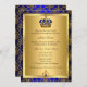 Kunglig blå och guld dop inbjudan. Elegant kunglig juvelkrona & guld damast. Anpassa med dina egna detaljer. Observera att alla platta bilder! de har inte riktiga juveler!