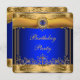 Vacker guld virvlar kunglig blå och guld födelsedagsfest inbjudan. Denna eleganta kungliga blå och guld födelsedagsfest inbjudan är lätt att anpassa för ditt evenemang genom att helt enkelt lägga till dina evenemangsuppgifter, typsnitt, teckenstorlek och färg samt formulering. Observera att alla klistermärken, kort och inbjudningsdesigner du hittar på Zazzle är tryckta grafik med inga faktiska ädelstenar, band, upphöjda, präglade eller tillagda delar eller bitar.