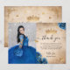 Kunglig blå och guld Quinceañera fotobirthday Tack Kort