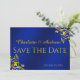 Kunglig blå och guld Spara datum Datumet