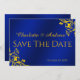 Kunglig blå och gul gyllene blomsterprydd klassisk stil spara datum kort. Personifiera med dina egna namn och speciella datum.