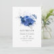 Vintage vattenfärg blomsterbröllopsinvitation med trendig kunglig blå och silver designad för att snabbt och enkelt anpassas till dina specifikationer. Perfekt för alla teman eller trädgårdsbröllop.